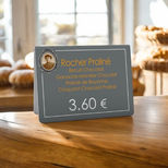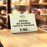 Petites étiquettes pour vos viennoiseries, grandes pour vos pâtisseries et snacking, bandeaux pour vos prix du pain.